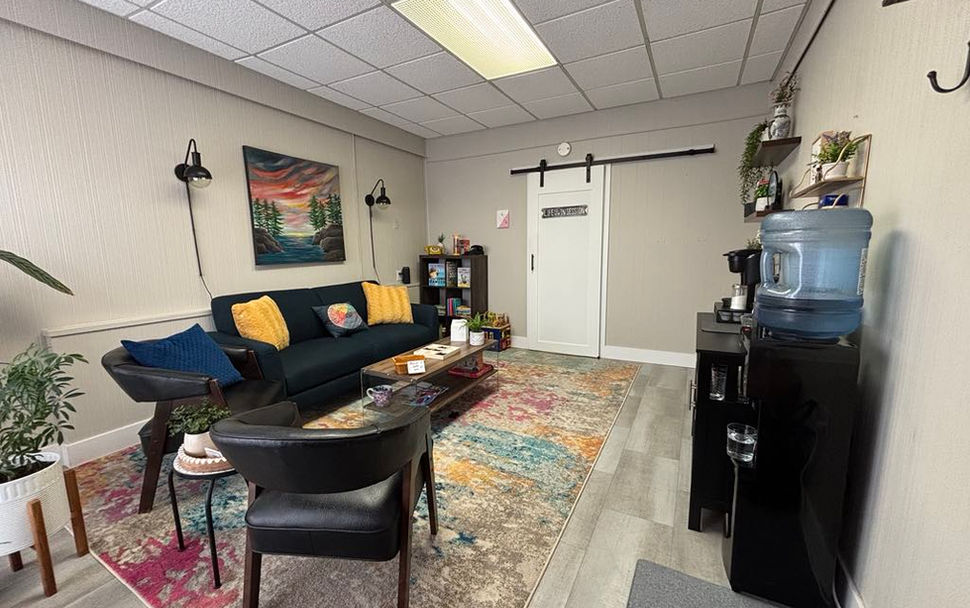 Our clinic was thoughtfully designed to feel safe, welcoming, and calming—for clients of all ages. From the moment you walk through the door, we want you to feel at ease, like settling in at home. Picture sipping a warm cup of coffee, reading your favorite book, or catching up on a bit of work while you wait.